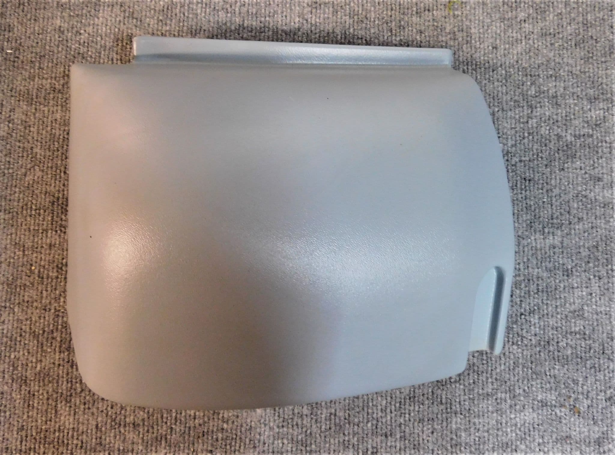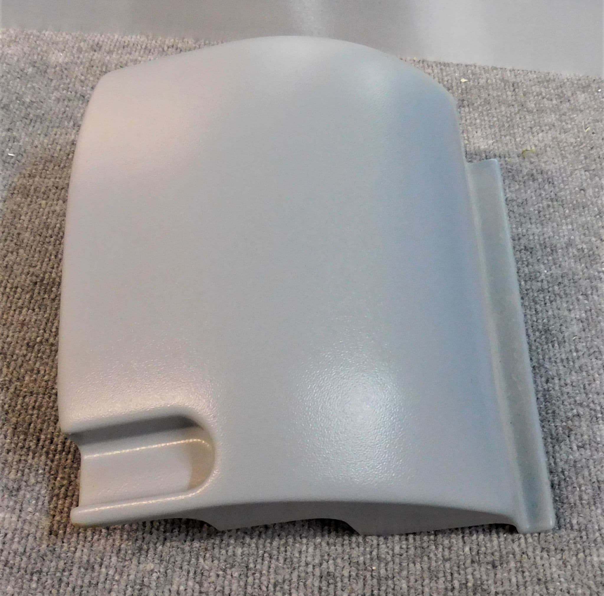 Grey "orange peel" textured colour plastic. NEAR SIDE.