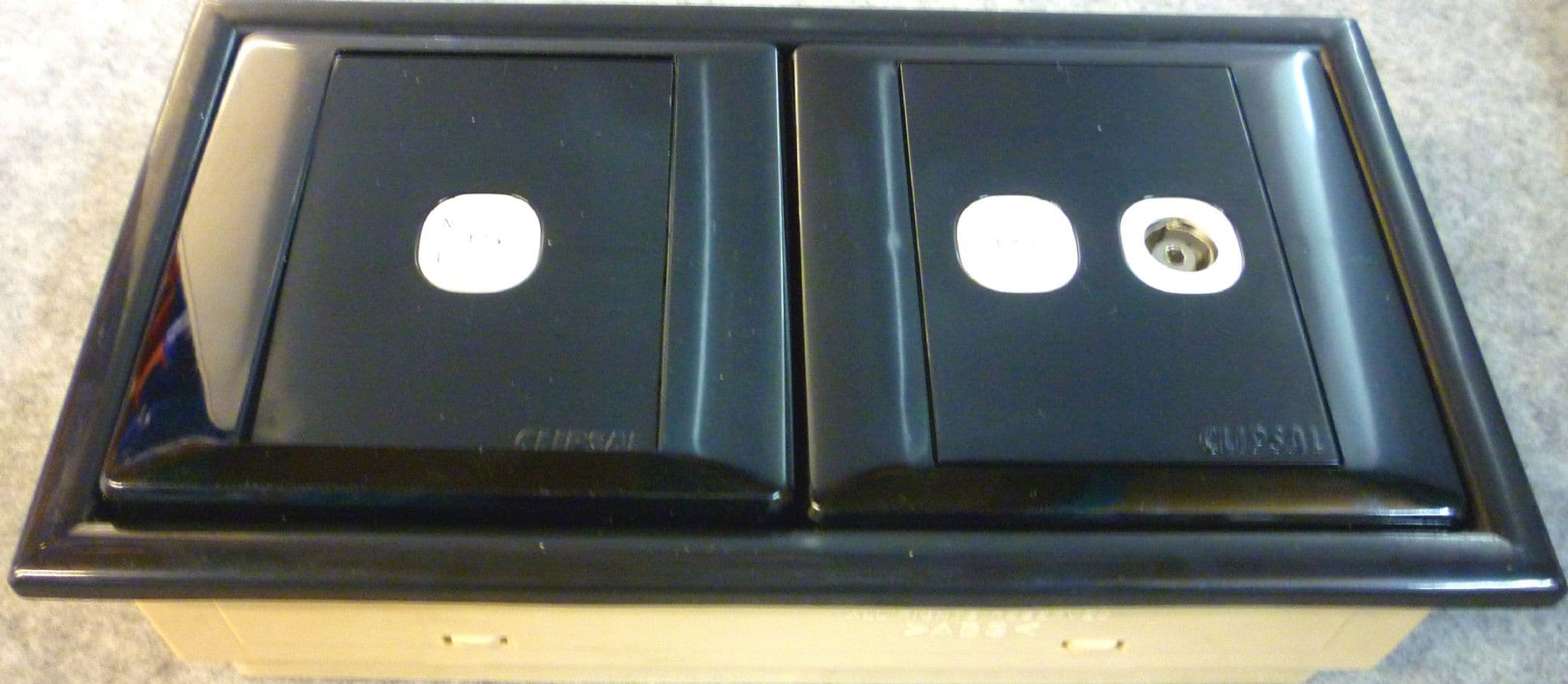 Plug in systems beige & black double back box.