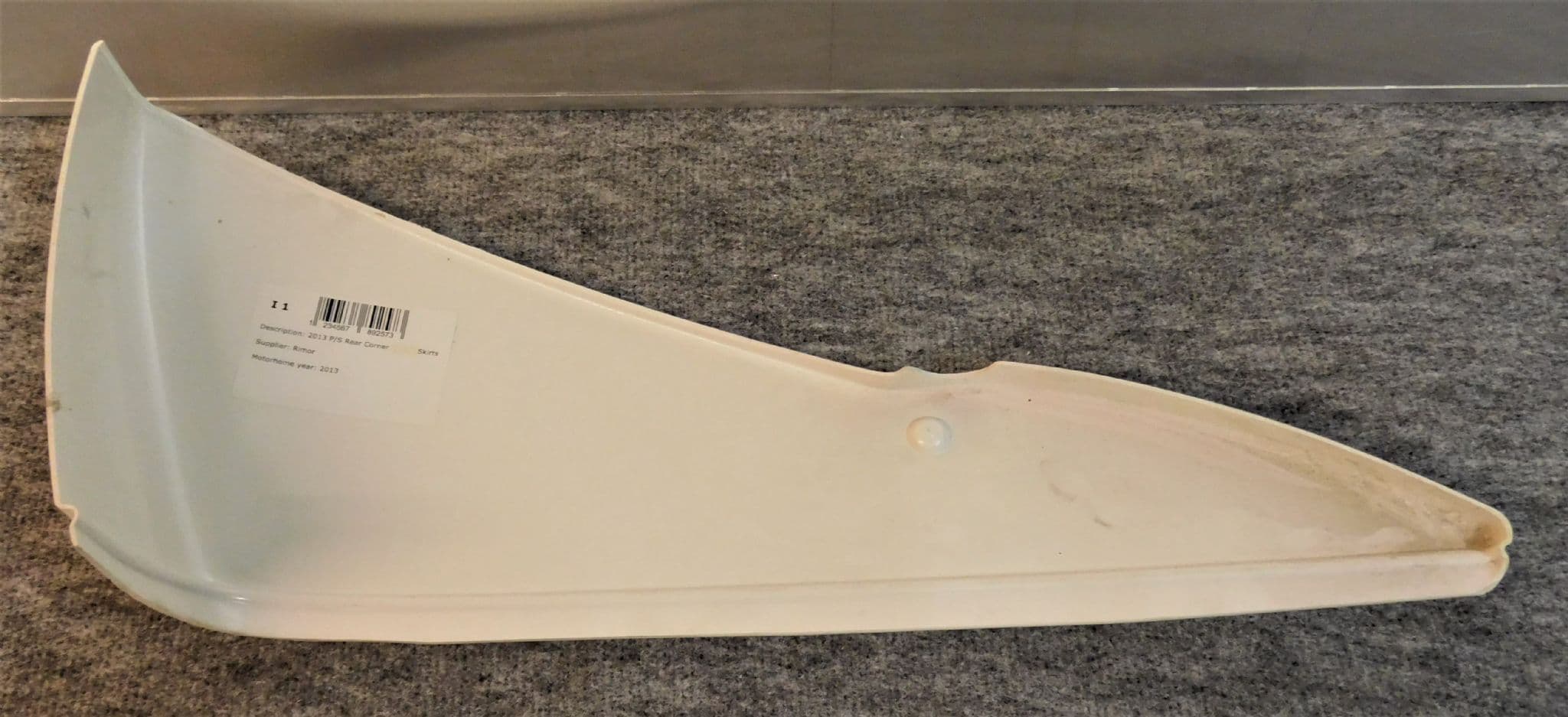 White plastic Rimor rear corner skirt Passenger side
